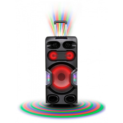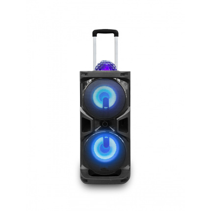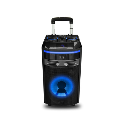 The Diamond trolley party box PS-1208 is a competitive trolley party speaker with good sound quality and vivid light effects. Thanks to its built-in battery you can bring the party everywhere. Just plug in your Mic or stream your playlist via Bluetooth or from a USB/SD stick. Connect two PartyBox speakers wirelessly with the TWS feature. Let’s get the party started!